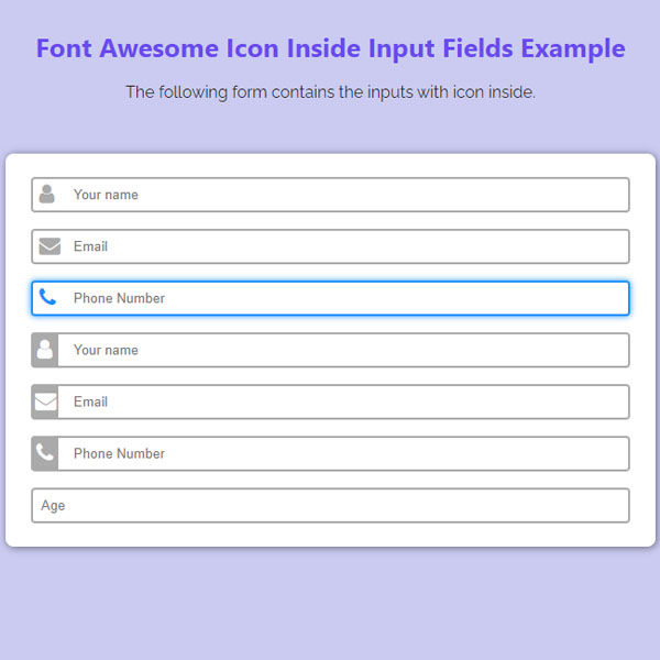 <h1>Font Awesome Icon Inside Input Fields Example</h1>